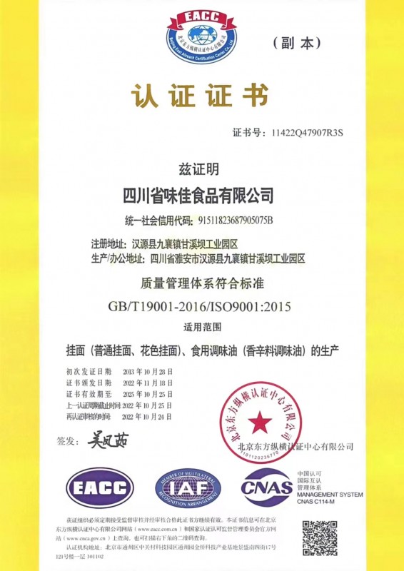 四川省味佳食品有限公司成立于2009年4月,位于漢源縣甘溪壩工業園區,占地面積22畝,總建筑面積10568平方米。注冊資本300萬元,總投資4280萬元。公司經營范圍為:調味料(調味油)生產、銷售;土特產購銷;掛面生產、銷售。