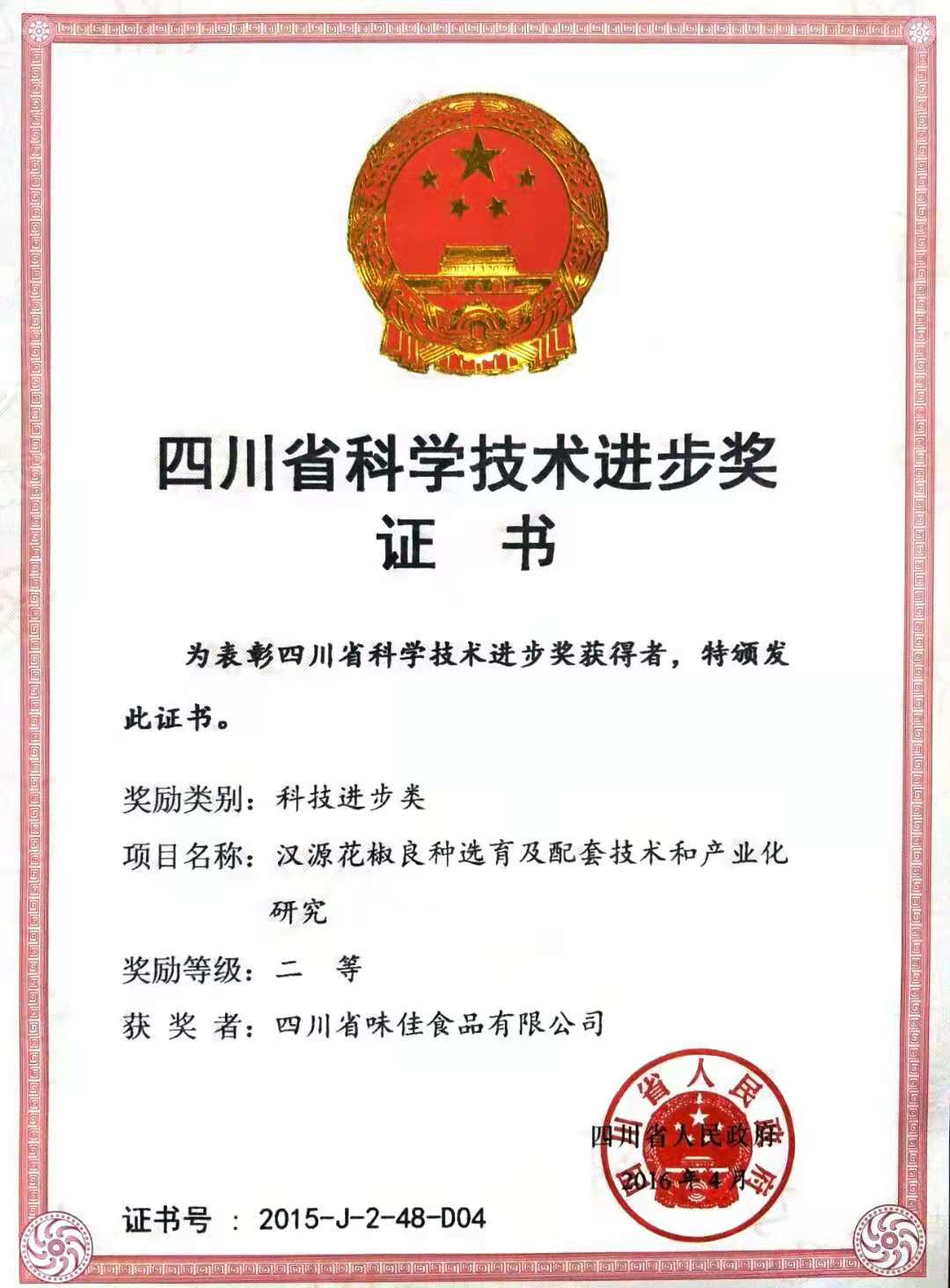 公司取得了“漢源花椒”國家地理標志保護產品專用標志使用權, 榮獲中國綠色食品發展中心頒發的“貢椒源”漢源花椒和“貢椒源”花椒油的綠色食品證書,通過了ISO9001質量管理體系認證,獲得“漢源縣規范生產示范企業”稱號。公司還先后獲得 “省級質量信用A級”、“雅安市農業產業化經營市級重點龍頭企業”、縣先進企業、先進集體、誠信經營示范單位、守合同重信用企業、農業產業化經營先進獎等榮譽稱號。2018年公司執行董事陳豪被評為優秀民營企業家。